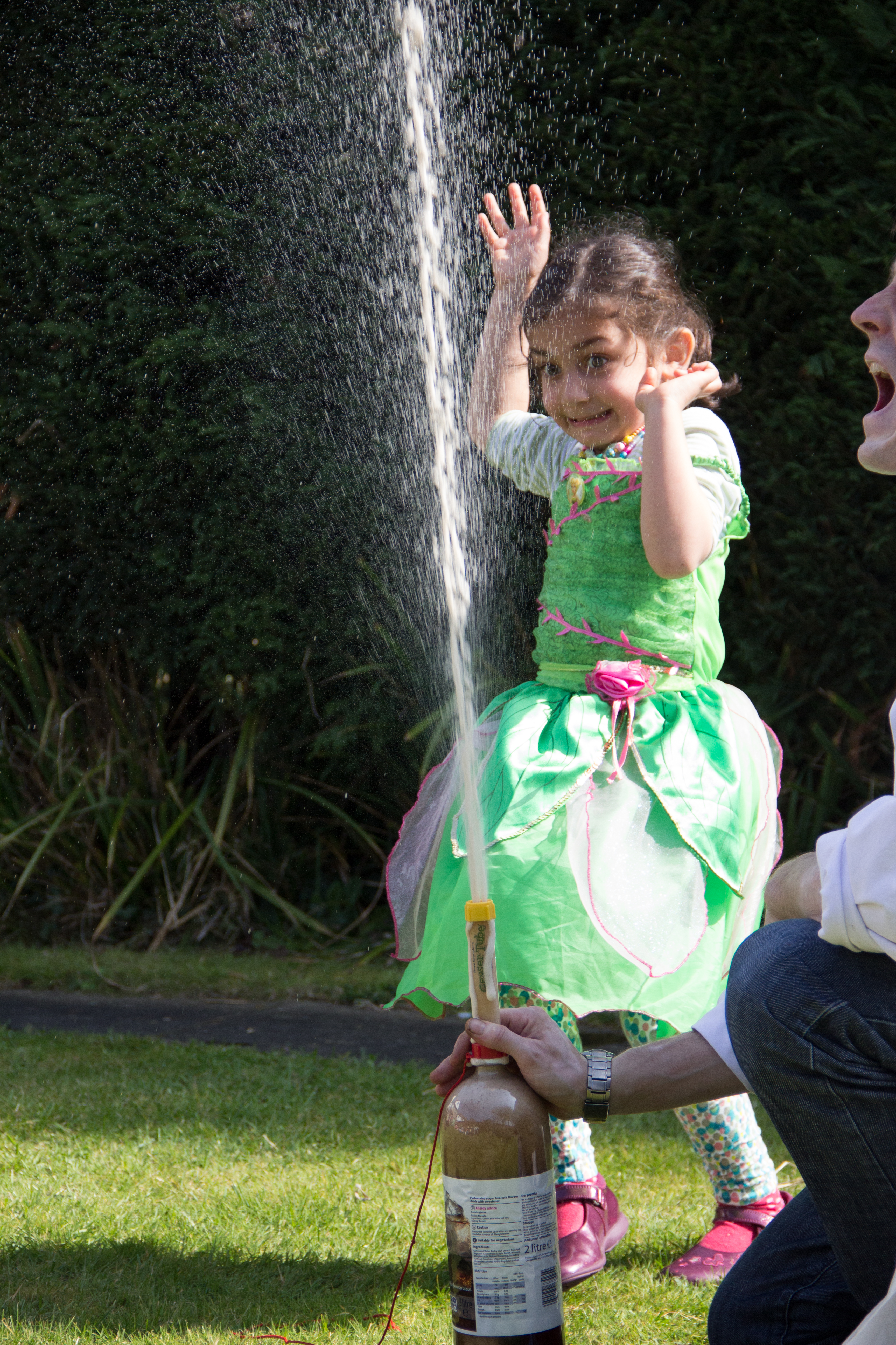 We held a science party for the kids a couple of years ago and a chap turned up in a lab coat. He made goo, they played with bubbles, and then he dropped mints into a bottle of fizzy something or other.