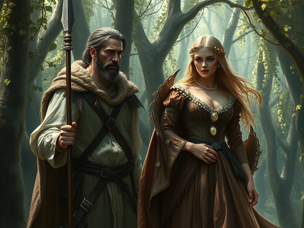 AI generated image of Jan the Huntsman and Lady Tamara from The Bloody Briar