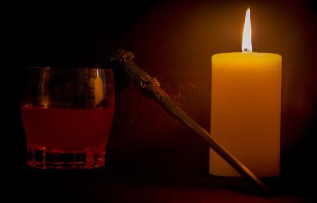 I snap the wand across my knee and throw into the remains of the fire. The flames flare up briefly, and then sink back. Her eyes widen in surprise.