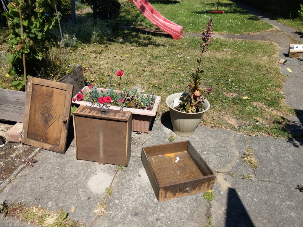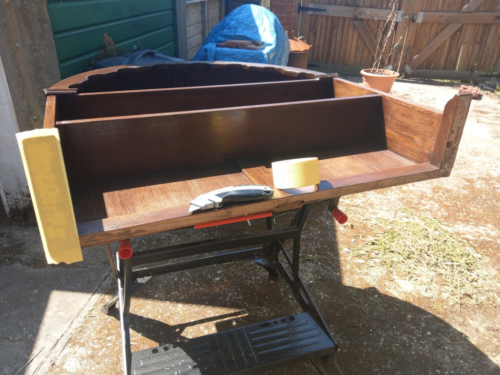 A closer inspection showed that it wasn’t a particularly good piece either. No wonder they’d picked it up for a tenner. The main structural parts looked like oak, but the rest was plywood and veneer. Most of that was de-laminating.